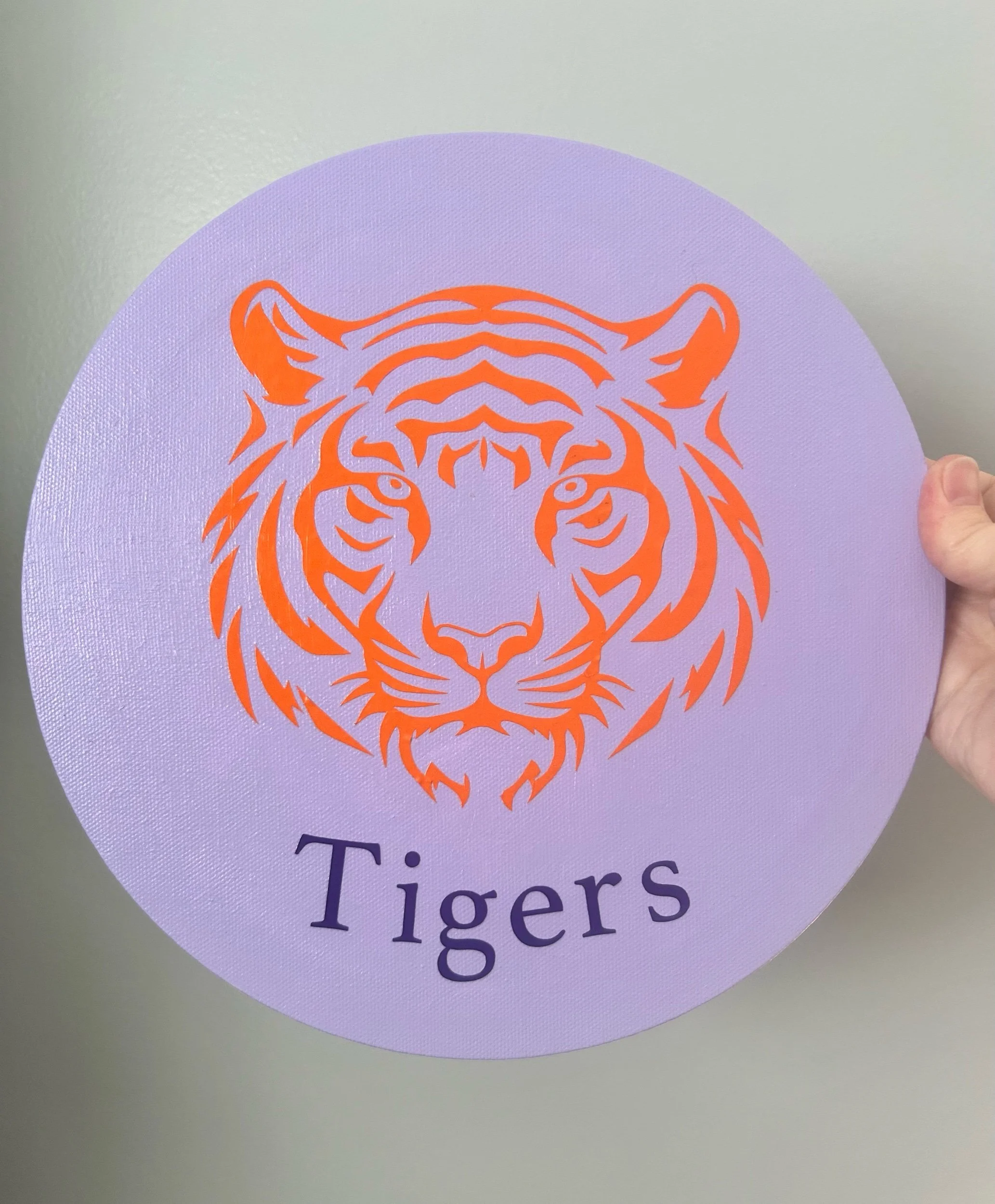 Clemson inspired painted canvas with vinyl decals. Sealed with mod podge. Perfect decor for your sports fans. These are made to order. Please allow 3-5 days to ship.