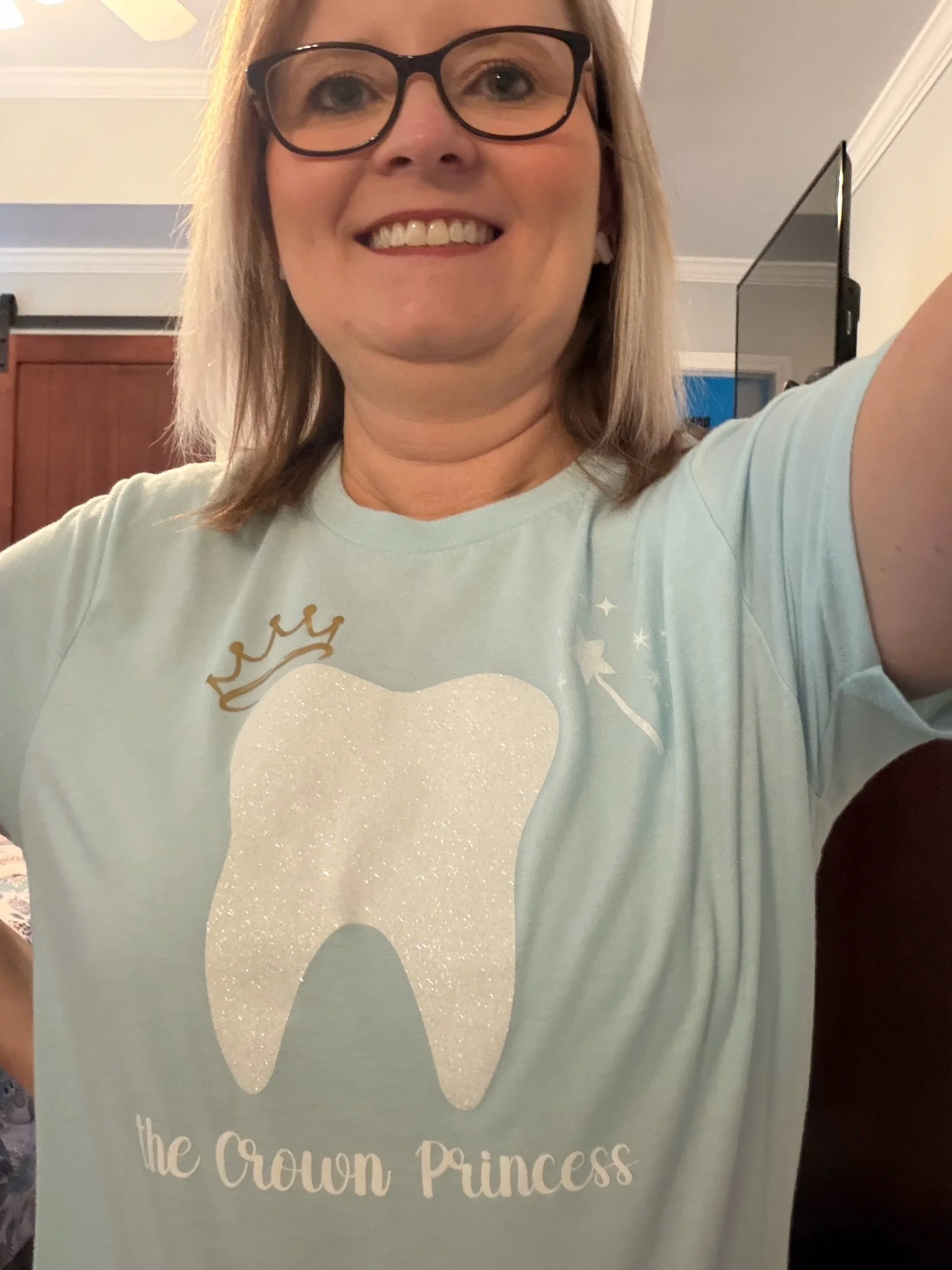 KJ’s Creations › Dental Princess shirt Image 1 of 5 Image 2 of 5 Image 3 of 5 Image 4 of 5 Image 5 of 5 Dental Princess shirt $20.00 Dental princess shirt on Bella canvas. Glitter tooth available in a variety of colors. Colors: Select Colors Mauve Berry Ocean blue Turquoise Sizes: Select Sizes Small Medium Large Purchase Added! Dental princess shirt on Bella canvas. Glitter tooth available in a variety of colors. Reviews Reviewer Name Review Date Star Rating Description Posted on Etsy Product Show More